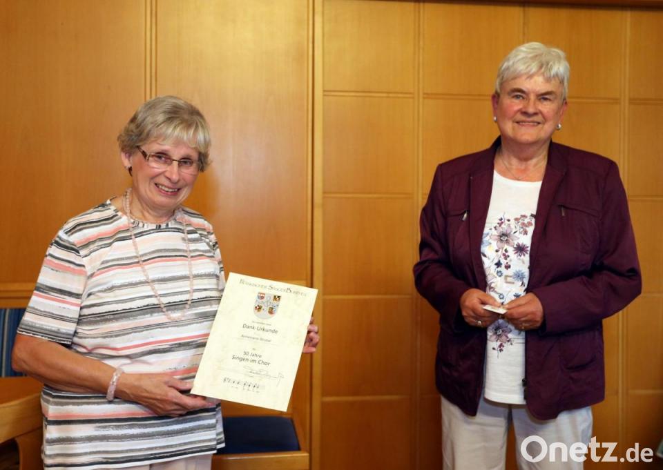 Nach einer langen Corana-Pause holte der Gesang- und Orchesterverein nun seine Jahreshauptversammlung nach. Die Vorsitzende Helga Heger ehrte dabei Annemarie Strobel für 50 Jahre treue Mitgliedschaft im Verein. Zudem betreut sie seit vielen Jahres als Notenwartin zuverlässig das in vielen Jahren angesammelte Notenmaterial.