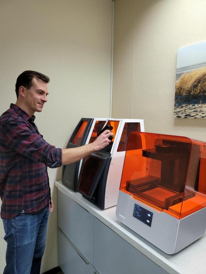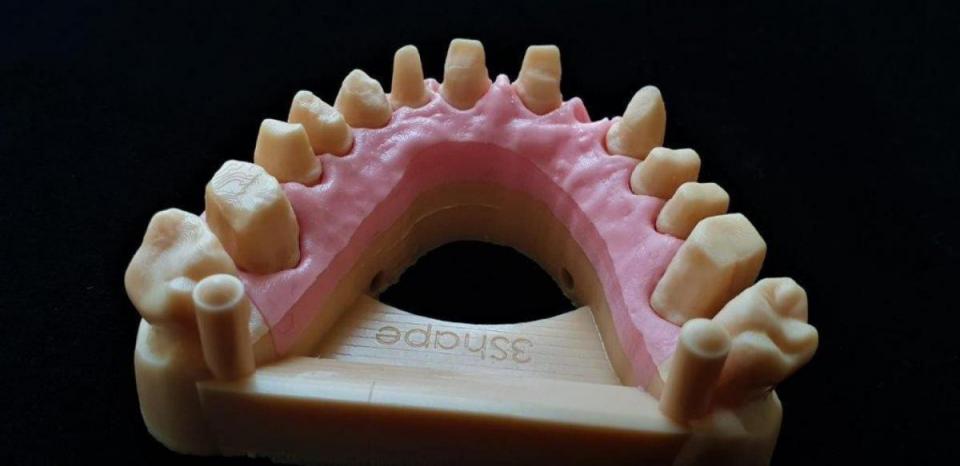 Zudem hat sich das "dental team" um Jürgen Ott und Roland Binder auch auf den Bereich der Implantatprothetik spezialisiert. Unterstützt von 3D-Drucksystemen kann das Team hier Teile der Planung und Versorgung mit Implantaten übernehmen. Die eigenen 3D-Drucker für die Modellherstellung sichern eine gleichbleibend hohe und planbare Qualität der Produkte dabei ebenso wie die Kooperation mit den Besten ihres Fachs in Sachen Materialversorgung.