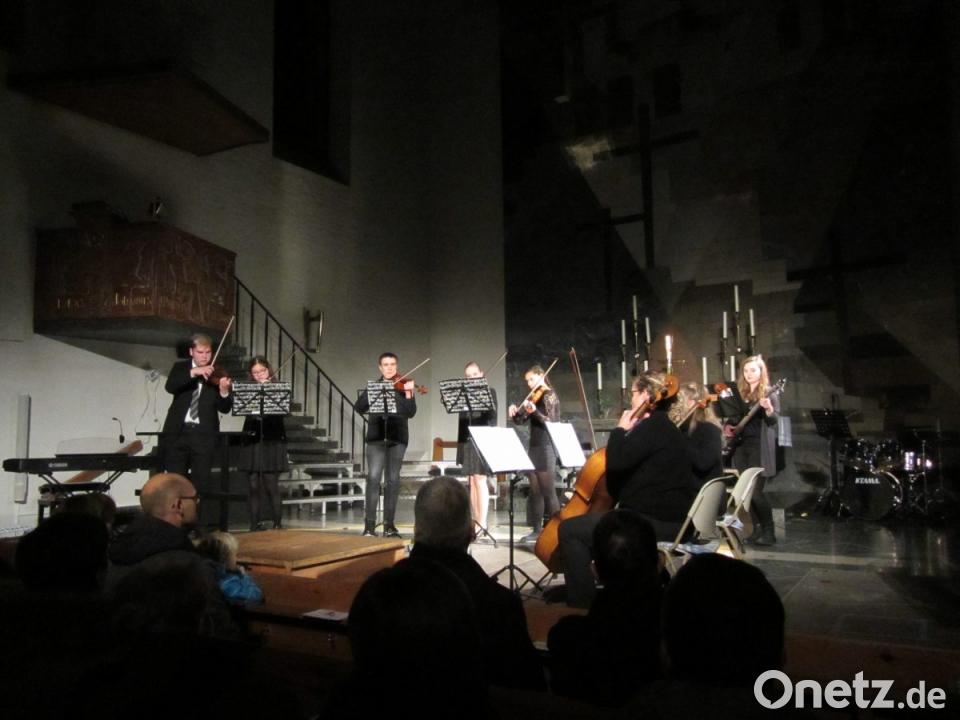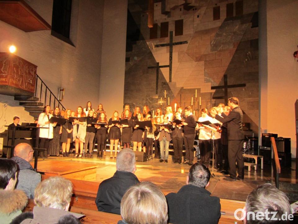 Das fein abgestimmte Vokalensemble weitete den Horizont mit Spanischem und der puristischen Pentatonix-Version von "Can't help falling in love". Feine Eleganz durchzog auch die vom Streicherensemble beigesteuerte "Pavane" von Gabriel Fauré. Der Lehrerchor hielt sich ebenfalls an leise Töne und beeindruckte mit dem friedvollen "Zum Sanctus" aus Franz Schuberts "Deutscher Messe".