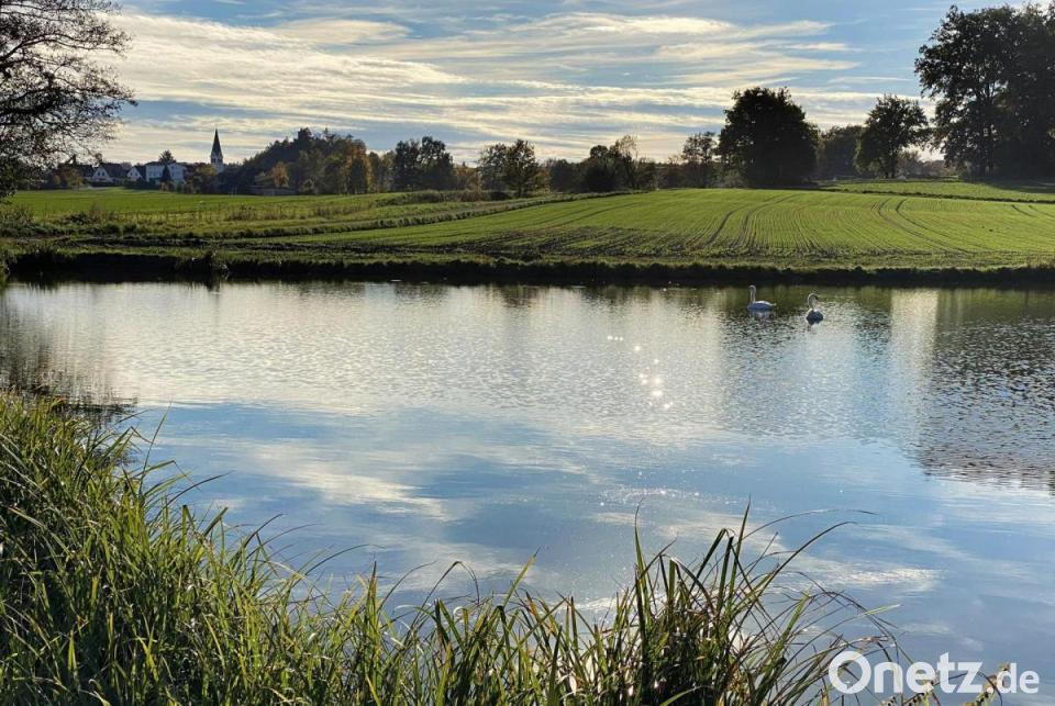 Ein Spaziergang vom Ortsteil Oberschwaig in Richtung Waldgebiet lässt diese idyllischen Eindrücke an einem Weiher in Nähe des Verbindungsweges zum Frohnberg oder nach Hahnbach zu. Während im Hintergrund der Turm der Herz-Jesu-Kirche in der Ferne grüßt, haben sich zwei Schwäne auf dem Gewässer niedergelassen, die neben der eigenen Nahrungssuche auch noch einen Blick für die bereits aufgelaufene neue Getreideansaat im angrenzenden Feld haben.
