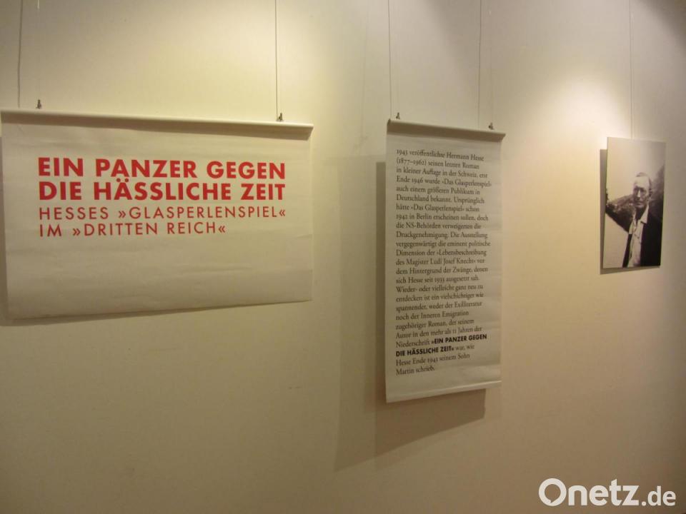 Die von Lutz Dittrich kuratierte Sonderausstellung "Ein Panzer gegen die hässliche Zeit - Hermann Hesses "Glassperlenspiel" im Dritten Reich" ist ab sofort bis 26. Februar 2021, Dienstag bis Freitag von 9 bis 16 Uhr (außer an Feiertagen), Sonntag von 14 bis 17 Uhr im Literaturhaus Oberpfalz zu sehen. Vom 19. Dezember bis 11. Januar ist das Literaturhaus geschlossen. Der Eintritt kostet 3 Euro, ermäßigt 2 Euro. Am 4. Oktober, 25. Oktober, 15. November und 6. Dezember, jeweils um 14.30 Uhr, gibt es 30-minütige Kurzführungen mit begrenzter Teilnehmerzahl, Dazu sind Anmeldungen zwingend erforderlich unter 09661/9 15 95 90 oder info[at]literaturarchiv[dot]de. (aks)