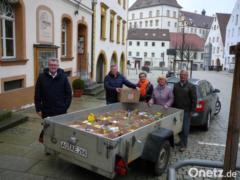 Aber die Sulzbach-Rosenberger vergessen auch nicht die hiesigen bedürftigen Mitbürger: Schon seit einigen Jahren packt die Hilfsinitiative nicht nur zu Weihnachten, sondern auch zu Ostern für sie Lebensmittelpakete. Heuer stellten sich die Vorbereitungen aber äußerst schwierig dar. Nicht nachvollziehbare Hamsterkäufe haben nämlich in den Supermärkten zu Limits bei der Abgabe zum Beispiel von Speiseöl, Mehl oder auch Nudeln geführt. So sahen sich die "Meine"-Mitglieder gezwungen, mehr Zeit als sonst beim Einkauf zu investieren, um alles Notwendige für 35 Pakete mit Grundnahrungsmitteln zusammen zu bekommen. Aber es hat geklappt, und die Tüten wurden pünktlich beim Haus für Bürgerdienste abgeliefert. Die Verteilung an Bedürftige übernimmt die Stadtverwaltung, versicherten Bürgermeister Michael Göth, der als eine Art Schirmherr die Aktion begleitet, und Adelheid Donhauser vom Sozialamt der Stadt.