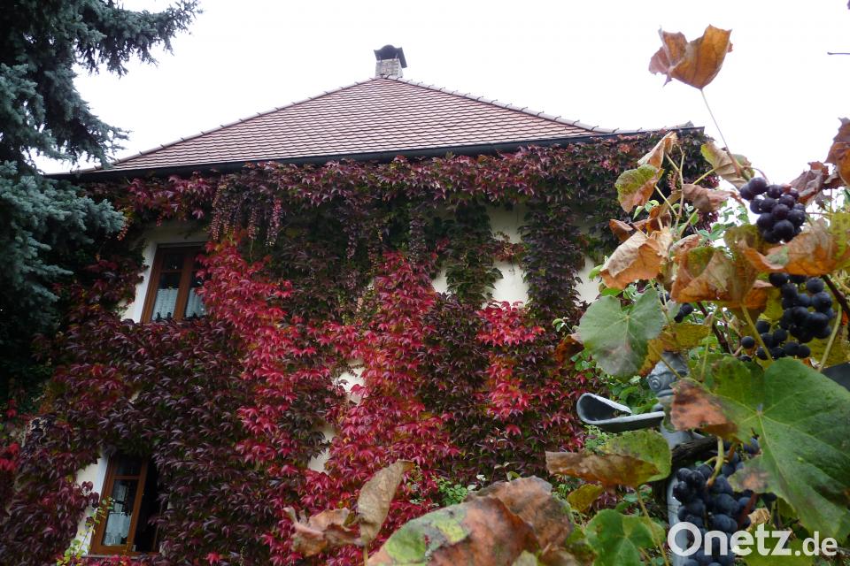 Außerdem schützt der dichte Vorhang der dachziegelartig überlappenden Weinblätter die Fassade vor Starkregen und Hagelschlag. Das grüne Polster wirkt zusätzlich wie eine Klimaanlage, die das Haus in heißen Sommern kühl hält. Unschätzbar gerade in den letzten Wochen mit ihrem Wüstenklima!