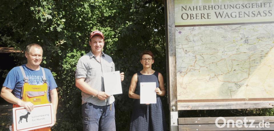 Denn die Sachlage ist die: Das Gebiet der Oberen Wagensass ist komplett Staatsforst und gehört somit dem Freistaat. Die Stadt Sulzbach-Rosenberg aber betreibt und unterhält dort drei öffentliche Einrichtungen: den Trimm-dich-Pfad, den Waldspielplatz an der Auffahrt und die Unterstellhäuschen. Hier galt es nun, eine Lösung zu finden, gemeinsam mit den Staatsforsten. In dem Schriftstück ist der 2,4 Kilometer lange Verlauf des Sportpfades im Wald genau beschrieben, ebenso der Spielplatz und die Hütten. "Jeder hat das Recht, die Anlagen zu benutzen", heißt es ausdrücklich. Allerdings müssten sich die Benutzer so verhalten, dass kein anderer gefährdet, geschädigt oder "mehr als nach den Umständen unvermeidbar" belästigt wird. Rosalia Wendl, die Leiterin des Ordnungsamtes, und Revierleiter Julian Sauter vom Forstbetrieb Schnaittenbach, stellten gemeinsam mit Norbert Gräml vom Bauhof die neuen Schilder vor, die ab dem Wochenende an den Eingängen zum Sportpfad angebracht sind: Staatsforsten und Stadt informieren darüber, dass man nach dem bayerischen Waldgesetz auch große Hunde überall in der freien Natur frei laufen lassen darf, wenn sie jederzeit durch Kommandos beherrschbar sind.