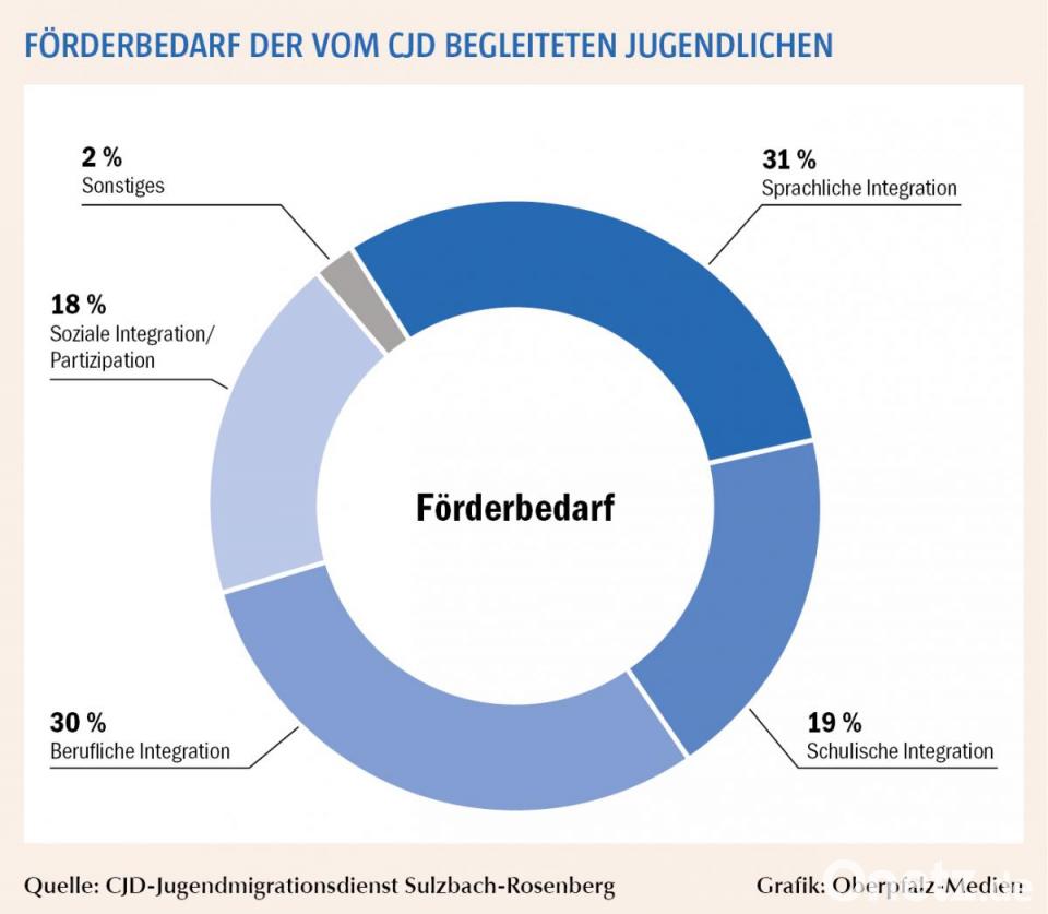 Rathauschef Michael Göth erkundigte sich nach dem Förderbedarf der Jugendlichen. Hier liegen die Schwerpunkte bei der sprachlichen und beruflichen Integration mit 31 und 30 Prozent. Hilfen beim Schulbesuch folgen mit 19, und Unterstützung im sozialen Bereich mit 18 Prozent. Zwei Prozent fallen unter sonstige Bereiche.