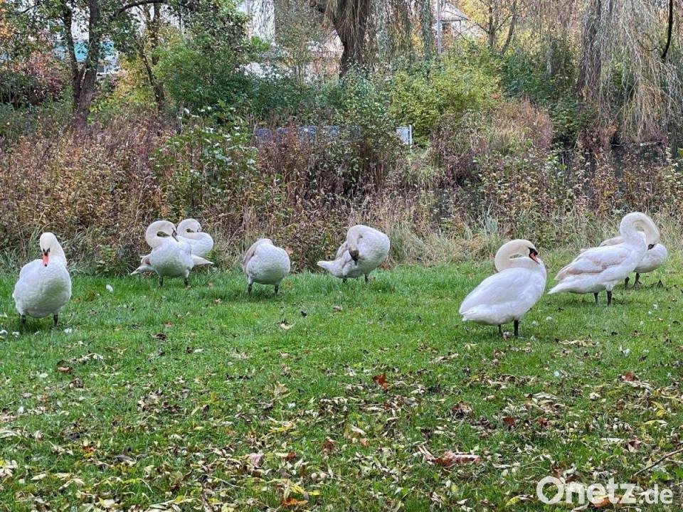 Die Jungschwäne vom Sulzbach-Rosenberger Stadtweiher nutzen Landgang zum Aufhübschen