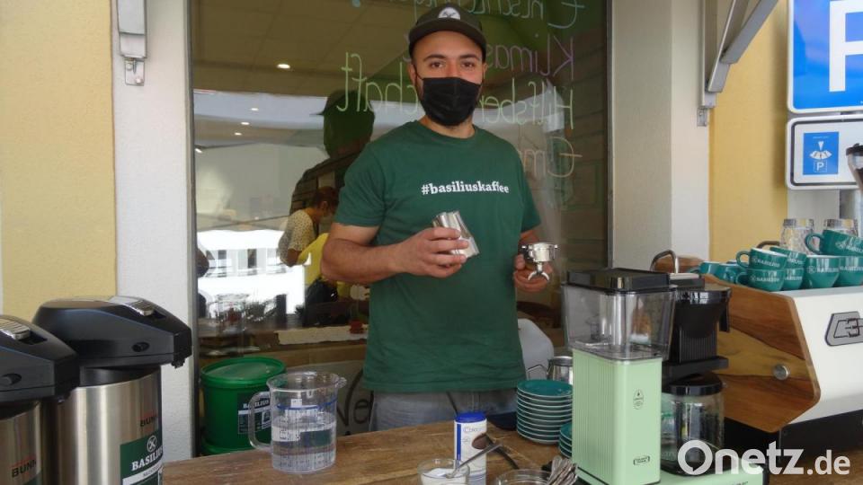 „Löwenbändiger“, „Nachteule“ und „Betthupferl“ heißen drei neue Kaffeesorten im Unverpacktladen Weltfairbesserer, die es am Samstag zu probieren gab. Dazu hatte die Kaffeerösterei Basilius aus Velburg ihre mobile Kaffeebar in der Neutorgasse aufgebaut, und Erdal Oeser ließ die Passanten den vollen Geschmack der bittersüßen Bohne in Form von Espresso, Cappuccino oder Americano testen.