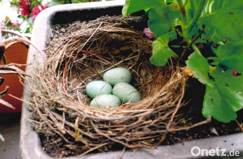 Die Nachwuchs-Planung war bei Sieglinde Luber zwar schon abgeschlossen, doch seitdem die 61-Jährige bei sich im Garten vier Vogeleier entdeckt hat, übt sie sich als Hilfs-Mutter. In den Geranien-Kästen von Opa Manfred Hausner, der auch mit im Haus in der Glückaufstraße am Feuerhof wohnt, beobachtete Luber eine Amsel, wie sie emsig Nistmaterial herbeischaffte. „In nur einem Tag hat sie ein tolles Nest aus Zweigen und Blättern in den Geranienkästen gebaut, richtig gemütlich“, erzählt Luber. Kurz darauf entdeckte sie auch schon vier türkis-gefärbte Vogeleier in der Amsel-Kinderstube. Die Vogelmutter hat sich als Brutstätte die Gartenlaube auf dem Luber-Grundstück ausgesucht. Die Laube ist überdacht und das Nest vor Regen geschützt. „Wir haben weitere Blumenstöcke als Sichtschutz um das Nest herumgestellt, damit die Amsel sich wohl fühlt und ihre Ruhe hat“, berichtet Luber. Auch vom Familienhund, der gelegentlich im Garten unterwegs ist, lässt sich die Vogelmutter nicht schrecken. Jetzt heißt es abwarten: Die Brutzeit von Amseln beträgt rund 14 Tage. Gut möglich, dass Familie Luber bald von aufgeregtem Vogelgezwitscher von vier hungrigen Amsel-Kindern geweckt wird.