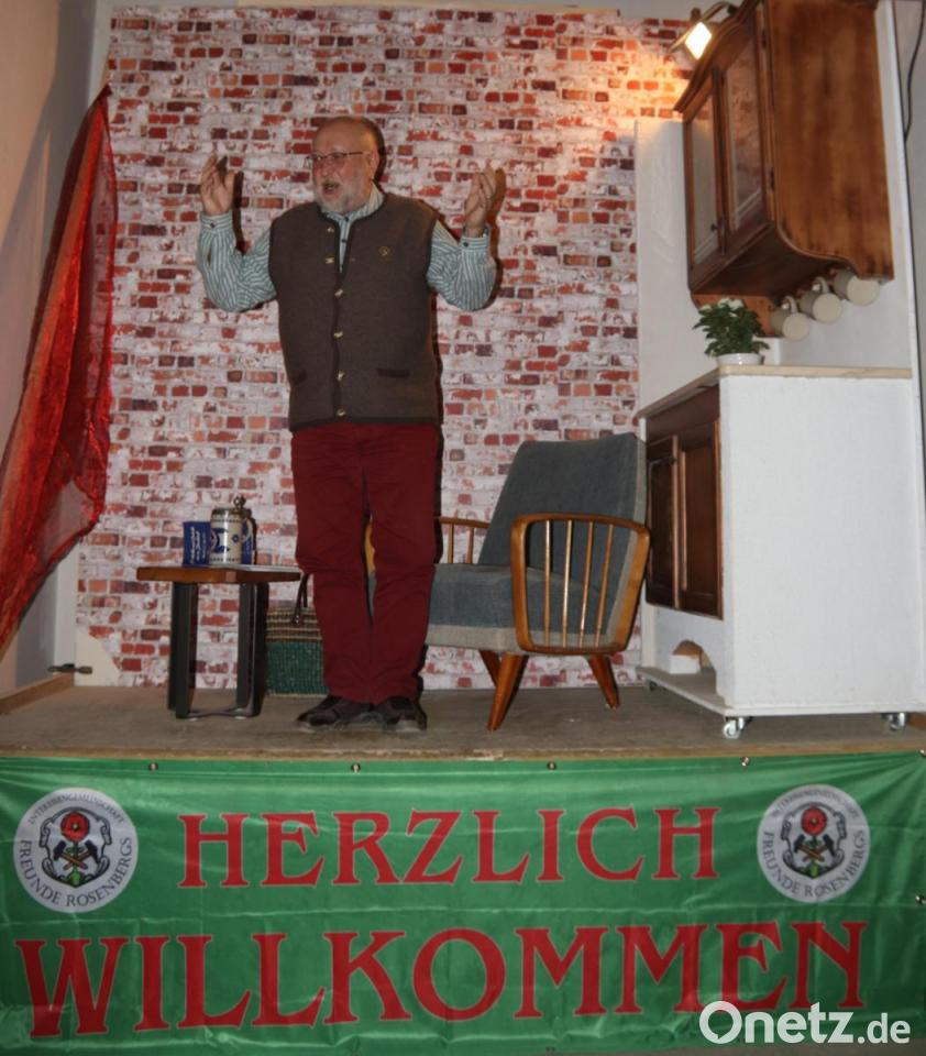 „Der Lösch beim Rösch“, hieß es in der Ankündigung. Immer wieder hörte man schallendes Gelächter beim „Bloicher“. Nicht-Rosenbergern sei verraten, das ist die exakte Adresse der Schreiner Rösch. Aus himmlischen Gefilden fuhr Sepp Lösch im kunstvoll dekorierten Lift zu den Zuschauern herab. Mit Stimmengewalt und Gestik trug er Anekdoten und Gedichte aus seinem Buch „G´schichtn und Gedichte aas´m Storchbeidl“ vor. Der Abschluss war das Gedicht „da Chef, da Oasch“. Fazit der Lesung: Jetzad weiß a jeda Mann, warum a Orsch aa Chef werden kann.