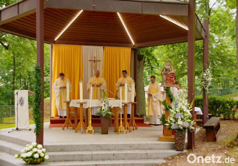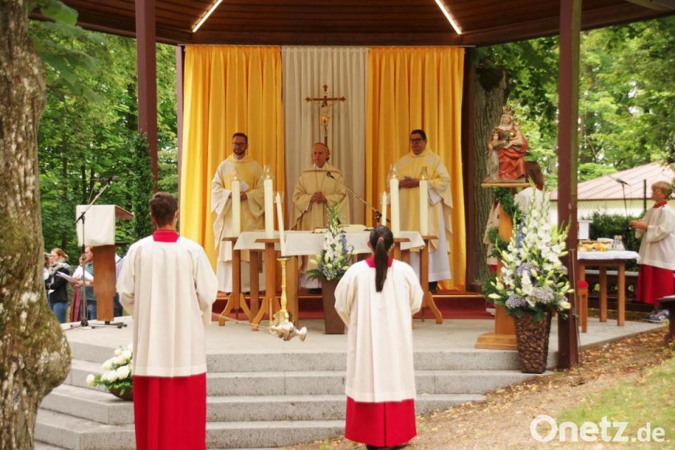 Zur Festmesse am ersten Bergfestsonntag kam Weihbischof Reinhard Pappenberger auf den Annaberg nach Sulzbach-Rosenberg. An seiner Seite konzelebrierten Stadtpfarrer Walter Hellauer und Kaplan Lucas Lobmeier.