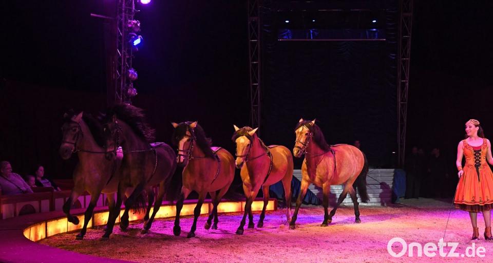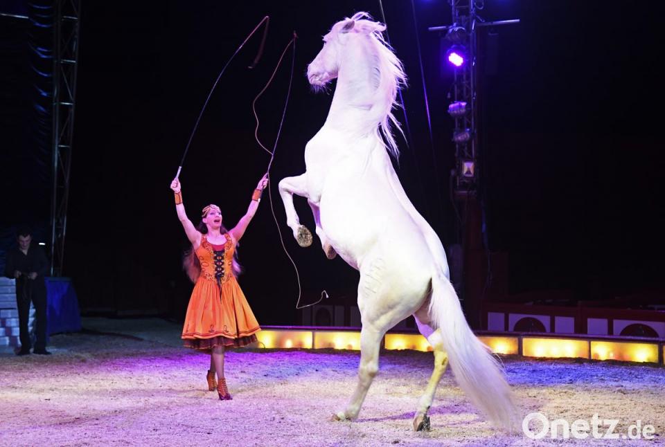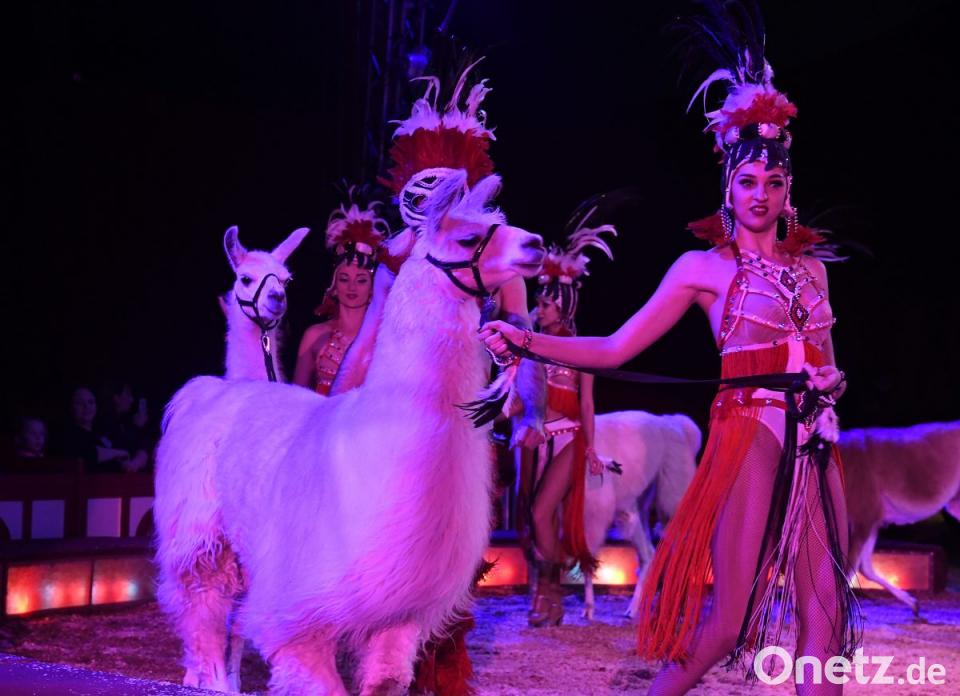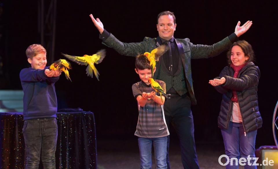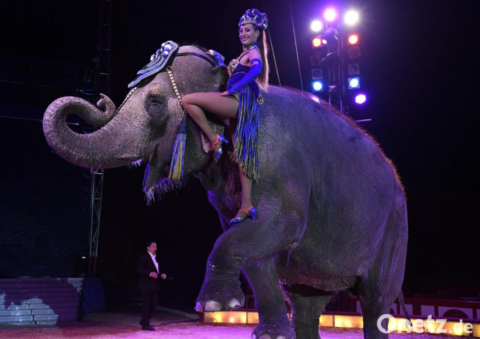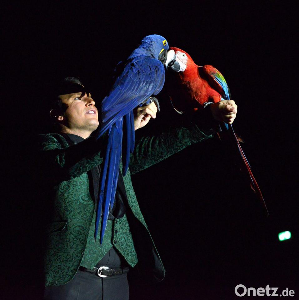 Breiten Raum im Programm nehmen die Tiernummern ein: Jana Mandana Lacey-Krone tritt mit Bara auf, wobei die Elefantendame zeigt, dass auch Schwergewichte sehr anmutig sind. Die junge Zirkus-Chefin führt außerdem prächtige und edle Hengste ins Rund der Manege, zeigt mit ihnen die hohe Schule der Reitkunst. Mit bunten Paradiesvögeln kann Alessio dienen. Seine pfiffigen Aras fliegen nicht nur kunstvoll über die Köpfe der Zuschauer hinweg, sondern rocken auch zur fetzigen Musik von YMCA das Zirkuszelt - drei Kinder aus dem Publikum dürfen als Nachwuchs-Artisten ins Scheinwerferlicht: Auf ihren Händen und Köpfen landen nicht minder flatterfreudige Mini-Papageien.