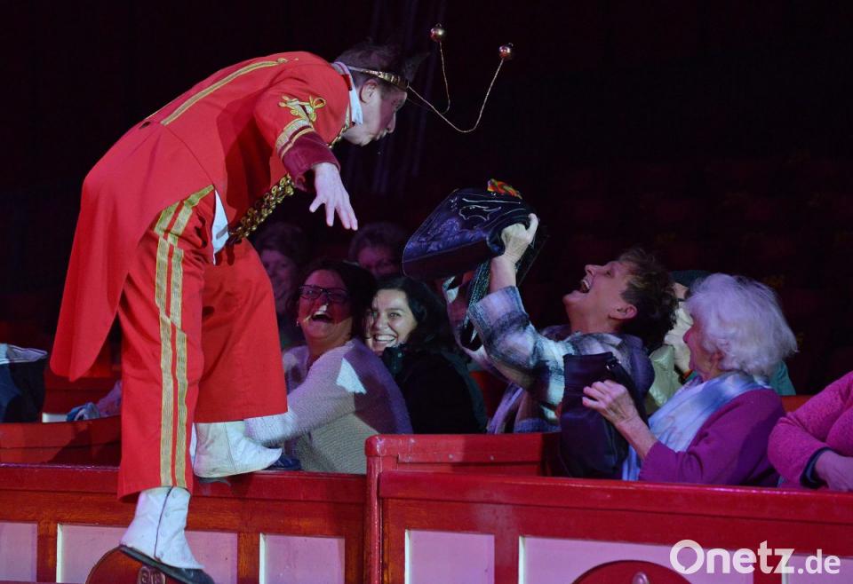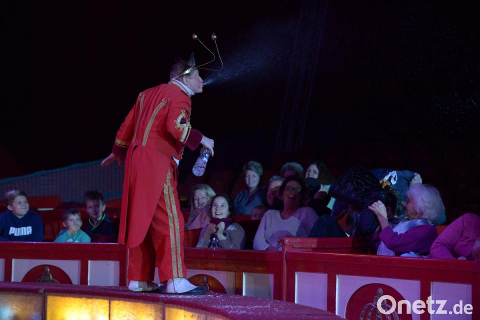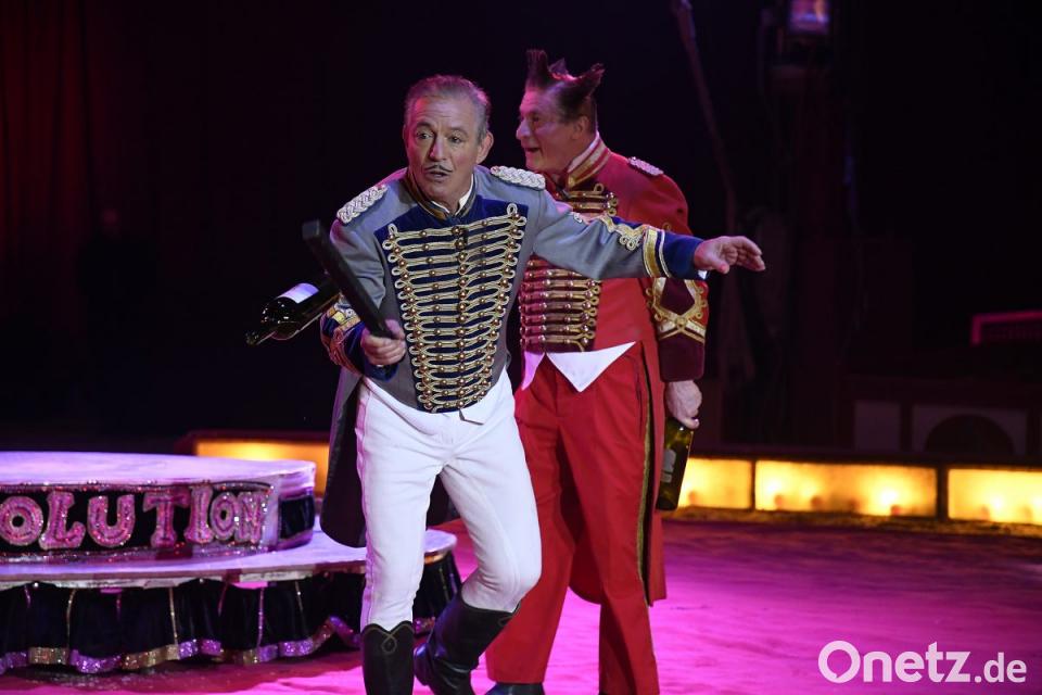Oder Crazy Wilson, der spektakulär auf dem Todesrad unter der Zirkuskuppel turnt. Sein Arbeitsgerät dreht sich rasant, er läuft darin, wechselt nach außen, führt waghalsige Kunststücke vor und hüpft über das Springseil. Wo darf man einem anderen Menschen Wasser ins Gesicht spucken? Natürlich nur im Zirkus. Und natürlich nur, wenn man von Beruf Clown ist. Fumagalli & Daris sind das und deshalb dürfen sie das. Die beiden Brüder aus Italien sind während der gesamten Vorstellung mehrfach zu Späßen aufgelegt. Das Duo beherrscht mühelos eine große Kunst: Menschen dazu zu bringen, herzhaft zu lachen - und zwar nicht nur die Kinder, sondern insbesondere auch Erwachsene.