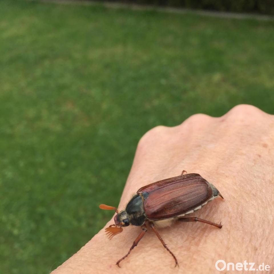 "Hurra, es gibt sie noch", schreibt Leserin Karin Hofmann. Als ihr am Donnerstag in Sulzbach-Rosenberg ein Maikäfer vor die Linse und auf die Hand flog, freute sie sich riesig - und schickte uns ein Bild.