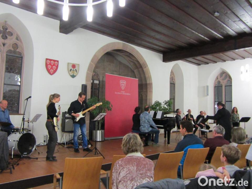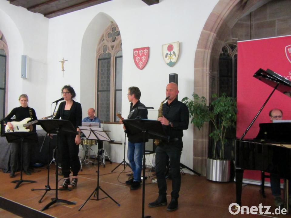 Nach der kunstvollen Ruhepause ging die mit Eckhard Kopetzki (Schlagzeug) und Susanne Lotter (Bass) gastverstärkte Lehrercombo (Saxophonist Stefan Frank, Pianist Werner Wiesmeth, Gitarrist Andreas Fischer) zum finalen Abfackeln der Bühne über. An den jazzigen "Morning Dance" der Band Spyro Gyra reihte sich der Jazz-Klassiker "Misty" mit Lisa Milyukova, die, wäre sie nicht Konzertpianistin und Klavierpädagogin, auch in jedem Jazz-Club als Sängerin Furore machen würde.
