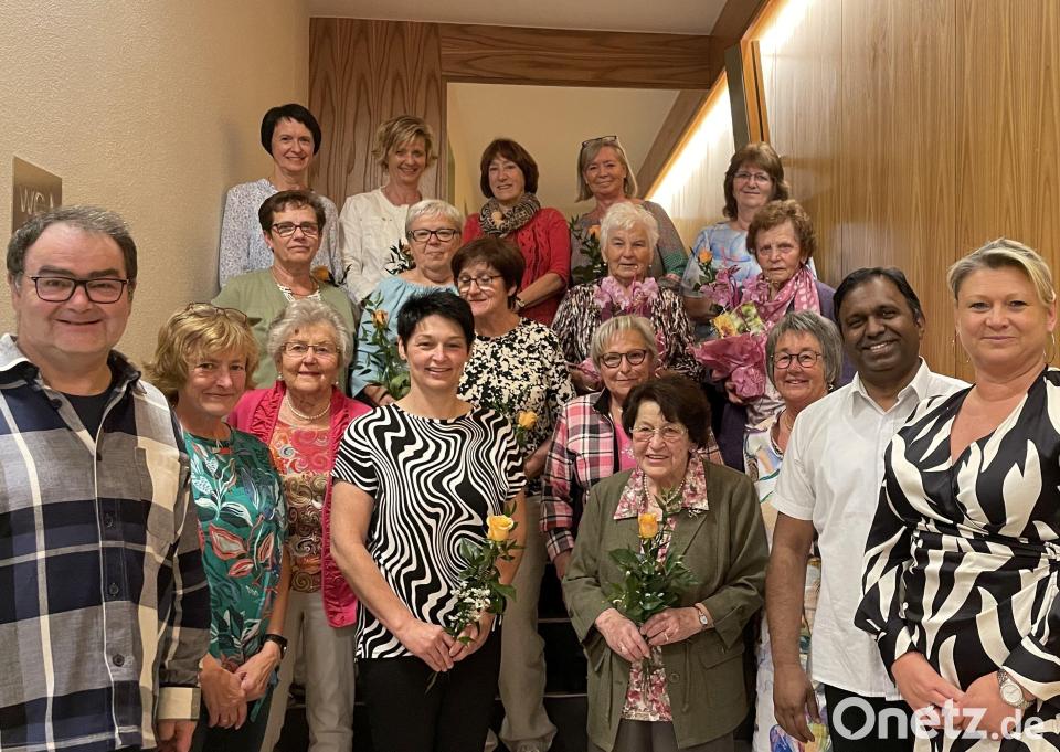 Kerstin Aufschneider, stellvertretende Diözesanvorsitzende, nahm zusammen mit Pfarrer Herbert Mader, dem geistlichen Beirat des Frauenbunds, die Ehrungen vor. Ein seltenes Jubiläum feiern Anna Honig und Maria Schmid, die seit 70 Jahren beim Frauenbund sind. Die Geschenke konnten sie jedoch nicht persönlich entgegennehmen. Anna Keil und Margarete Royer nahmen für 60 Jahren beim Frauenbund die Ehrennadel in Gold mit Stein und weitere Geschenke entgegen; Therese Münch bekommt sie nachgereicht. Seit 50 Jahren sind Herta Fruth und Rita Morgenschweis Frauenbundmitglieder. Als Dank wurden sie mit der Goldnadel mit Stein geehrt. Herta Fruth konnte an der Feier nicht teilnehmen. Seit 40 Jahren halten Rosemarie Bierler und Inge Zimmermann dem Frauenbund die Treue. Dafür erhielten sie die Goldnadel des Diözesanverbands. Verhindert waren Karin Bühl und Margarete Klameth. Mit der Silbernadel für 25 Jahre Treue zum Frauenbund wurden Margit Faber und Petra Grünwald ausgezeichnet. Nicht kommen konnte Birgit Gurdan. Alle Jubilarinnen erhielten noch ein Buchgeschenk und eine Rose. Mit großer Freude begrüßte das Vorsitzenden-Team Evi Rauch, Erika Beer und Maria Pilhofer neun neue Mitglieder im Zweigverein. Seit Jahren ist es Tradition, bei der Feier um Spenden für einen guten Zweck zu bitten. Evi Rauch berichtete von der "Zeitintensiven Betreuung im Pflegeheim" (ZiB), die das Caritas-Haus St. Barbara zusammen mit dem Hospizverein Amberg und dem Landkreis Amberg-Sulzbach durchführt. Die Sammlung erbrachte 674 Euro. Anschließend wurden die Gäste mit Schnittchen und Bowle bewirtet, die das Führungsteam des Frauenbunds vorbereitet hatte.