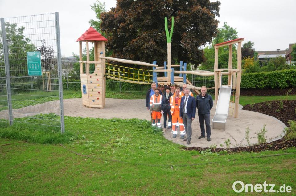 Mit Eltern und Kindern hatte das Stadtbauamt ein gemeinsames Konzept erarbeitet: Kleinkind-Bereich mit Schaukel und Federwipptier, Sandkasten und Mini-Spielanlage, aber auch ein großes Multifunktionsgerät mit Brücken, Rutschen, Türmen und Aufstiegen für die Fraktion "4 bis 10". Fallschutzmatten, Sitzgelegenheiten, Karussell und Tischtennisplatte komplettieren diesen Bereich, der Bolzplatz wurde gefräst und neu eingesät sowie mit einem Fangzaun ausgestattet.