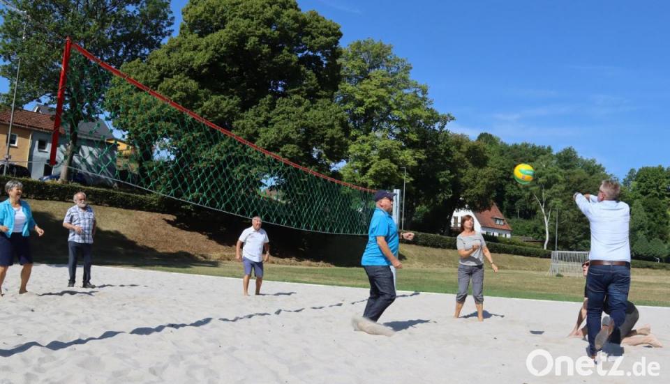 „Das Beachvolleyball-Feld hat eine turniertaugliche Feldgröße von 8 mal 16 Meter mit einer Auslauffläche von jeweils 3,5 Metern und ist mit einem zertifizierten Sand gefüllt“, ließ Roland Greipel vom Bauamt wissen. „Entgegen mancher Befürchtung haben wir beim Bau keine alte Anlage vom Stadtbad ausgegraben!“