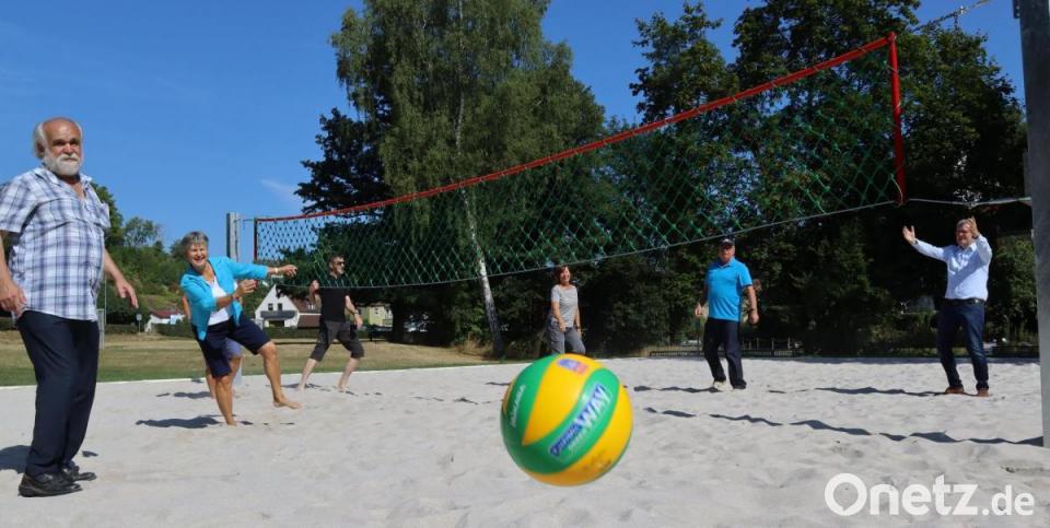 Die Stadträte begrüßten die Idee und setzten sie auch gleich in die Tat um. Hans-Jürgen Reitzenstein hatte einen Ball zur offiziellen Übergabe mitgebracht. Schnell bildeten sich zwei fraktionsübergreifende Mannschaften und das erste, nicht ganz regelkonforme Spiel fand statt, bei dem alle Beteiligten sehr viel Spaß und auch viel Sand in den Schuhen bzw. Socken hatten.