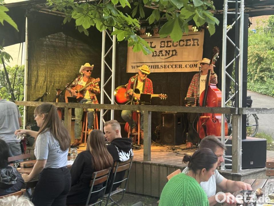 Ein lauer Sommerabend, aber die Musik war es keineswegs: Country und Rockabilly klangen durch den Pamler-Garten, als die Phil-Seccer-Band aus Vilseck den Landkutschen-Musiksommer mitgestaltete. Im Rahmen seiner "Take ya hats"-Tour 2024 bewies "Deutschlands lässigstes Akustik-Trio" mit Zupfbass und zwei Gitarren erneut seine Klasse, egal ob mit Ohrwürmern von Clapton und den Stones oder typischen Country-Nummern. Saloon-Feeling machte sich breit - "hätten wir doch unseren Cowboyhut mitgenommen", dachten sich wohl die meisten. Ein perfekter dreistimmiger Gesang, gut dosierte Soli und vor allem eine Menge Spielfreude machten den Auftritt zu einem Erlebnis. Rusty „Wag” Beam und Pete W. Daniels an den Klampfen und Dave Walker am Slap-Bass erfüllten alle Wünsche. Der gut gefüllte Biergarten ließ die drei Cowboys nicht ohne Zugaben von der Bühne. Hut ab!