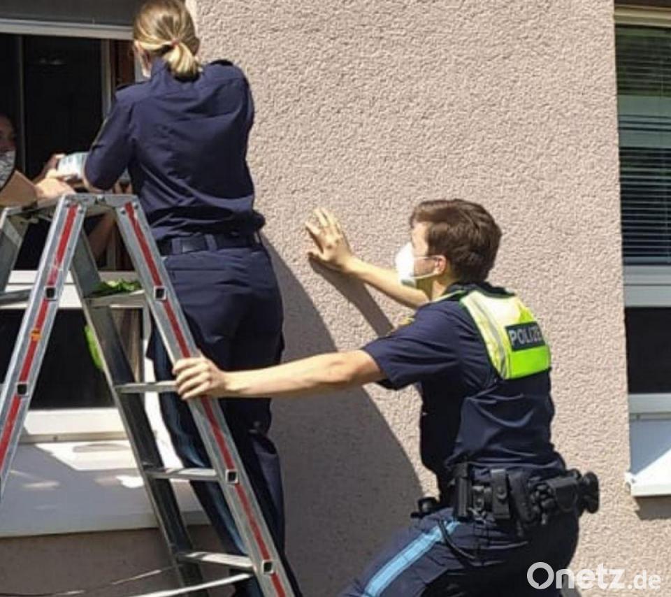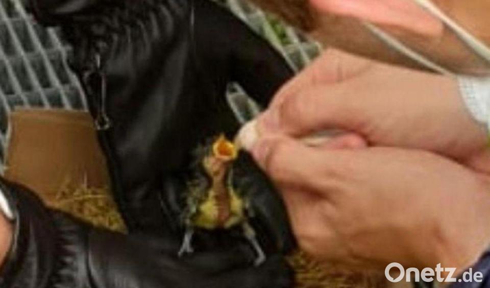 Mit vereinten Kräften konnten die beiden Küken geborgen und etwas aufgepäppelt werden. Die nächste Herausforderung bestand darin, die Schützlinge wieder zurück nach Hause zu bringen. "Da die Öffnung hinter der Hausfassade, die ins Nest führte, sehr klein war, wandte ein Ausbilder in MacGyver-Manier einen Trick mit einem präparierten Löffel an", heißt es in einem Pressebericht. Schließlich konnten die beiden Ausreißer zurück ins Nest gehoben werden und kurze Zeit später wurden sie von der Vogelmama mit einem dicken Wurm belohnt.