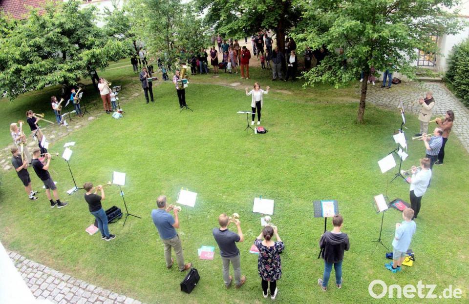 Bei einer Bläserserenade im Dekanatsgarten hinter der Christuskirche zeigten die zwanzig Bläser, dass sie trotz der Einschränkungen durch die Pandemie nichts verlernt haben. Sogar die Jungbläser, die teilweise erst nach dem Lockdown mit ihrer Ausbildung begonnen hatten, spielten fröhlich bei den meisten Stücken mit. Unter dem sorgsamen, sehr klaren Dirigat von Doreen Deyerl gelang ein harmonisches Zusammenspiel mit spürbarer Freude am Musizieren. Ob bei Chorälen wie „Lobe den Herrn“ und „Nun danket alle Gott“, die in unterschiedlichen schönen Sätzen dargeboten wurden, oder schwungvollen Gospels wie „Oh, when the saints go marching in“, wo der mitreißende Rhythmus gleich in die Beine ging, immer applaudierte das Publikum dankbar, und zum Schluss hörte man von einer zufriedenen Zuhörerin ein leises: „Wunderschön“.