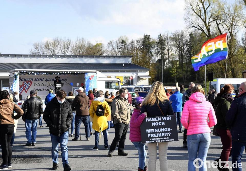 Angekündigt war als Abschluss ein Marsch in die Stadt, wo nahezu zeitgleich eine Gegendemonstration stattfand. Dieser Marsch war aber verboten worden, nach Aussage eines Polizisten wegen des Infektionsschutzes, laut Bauer, weil das Landratsamt eine Konfrontation befürchtete.