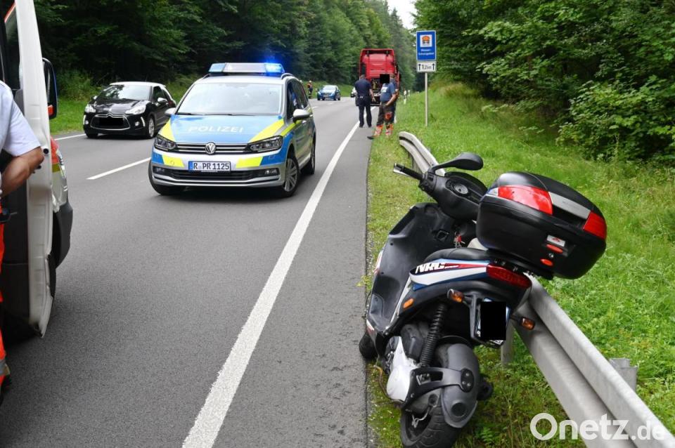 Glück im Unglück hatte am Dienstagnachmittag ein 62-jähriger Rollerfahrer. Er war auf der Bundesstraße 85 von Amberg in Richtung Sulzbach-Rosenberg unterwegs. Etwa etwa zwei Kilometer nach der Kreuzung bei Kropfersricht setzte ein 43-jähriger LKW-Fahrer mit seinem Fahrzeuggespann zum Überholen des Rollerfahrers an. Weil der Lkw-Fahrer laut Polizeiinspektion Sulzbach-Rosenberg dabei den Seitenabstand zum Zweirad nicht ausreichend einhielt, geriet der Rollerfahrer in den Sog des schweren LKW-Gespanns. Der 62-Jährige stürzte und zog sich leichte Verletzungen zu. Der Rettungsdienst brachte den Rollerfahrer in das örtliche Krankenhaus. Am Motorroller entstand ein Schaden von rund 300 Euro, der Roller war trotzdem noch fahrbereit.