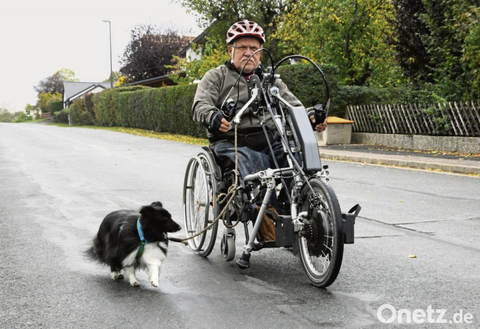 20 Stundenkilometer, diesen Schnitt hält er problemlos, und bei kürzeren Touren ist auch die dreijährige Sheltie-Hündin Mali sein treuer Begleiter. Bei den größeren Ausflügen, die bis zu fünf Stunden dauern können, ist Dütsch bestens gerüstet: Fahrradhelm, Handschuhe, Regenschutz, Brotzeit, Wasser und natürlich das Handy sind immer dabei. Früher hat ihn Gattin Inge am Endpunkt der Reise mit dem Auto abgeholt, jetzt plant er nur noch Rundtouren vom Wohnort Feuerhof aus.