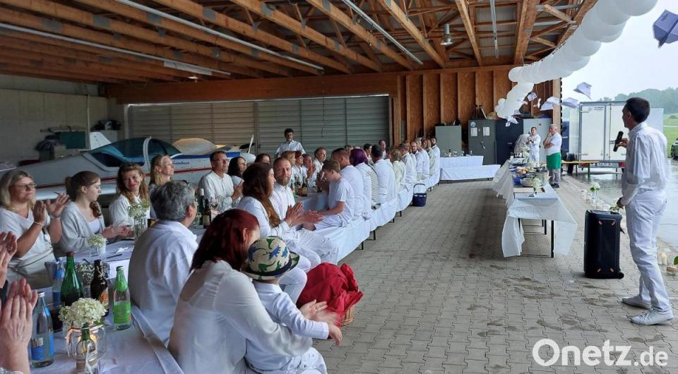 Eine lange, weiß gedeckte Tafel für über 60 weißgekleidete Personen in einem Flugzeughangar, der mit weißen Luftballons und weißen Papierfliegern dekoriert ist: Das ist ein untrügliches Zeichen für das jährliche White Dinner des Schlackenvereins. Bereits im vierten Jahr ist diese Veranstaltung an wechselnden, ungewöhnlichen Orten zu einer lieb gewonnenen Tradition geworden, mit der sich der Verein bei den vielen Helfern bei den Sportveranstaltungen wie Schlackenmarsch oder Hindernislauf bedankt.