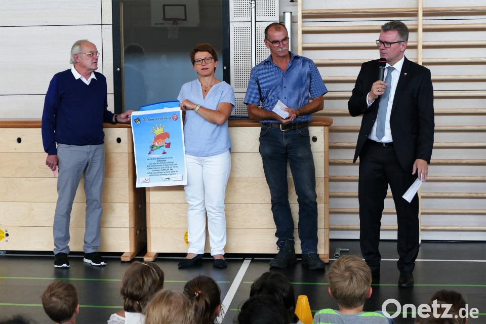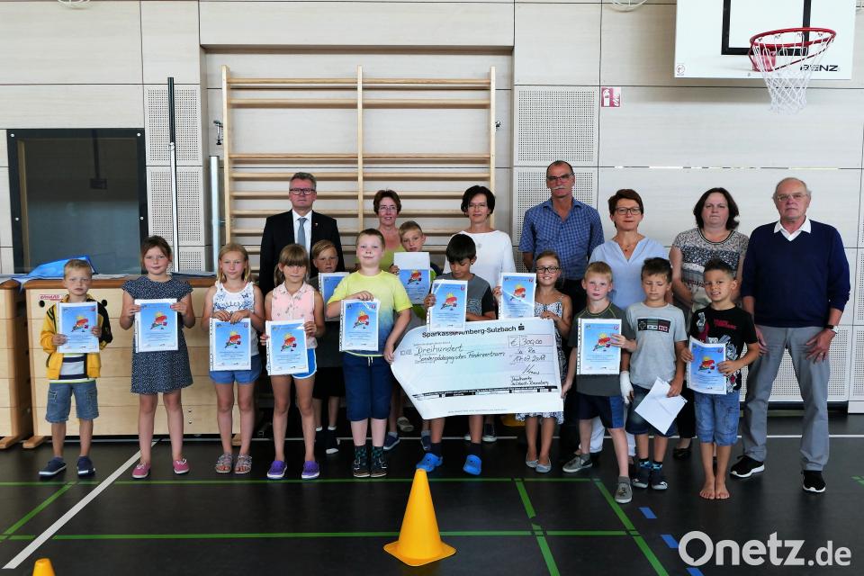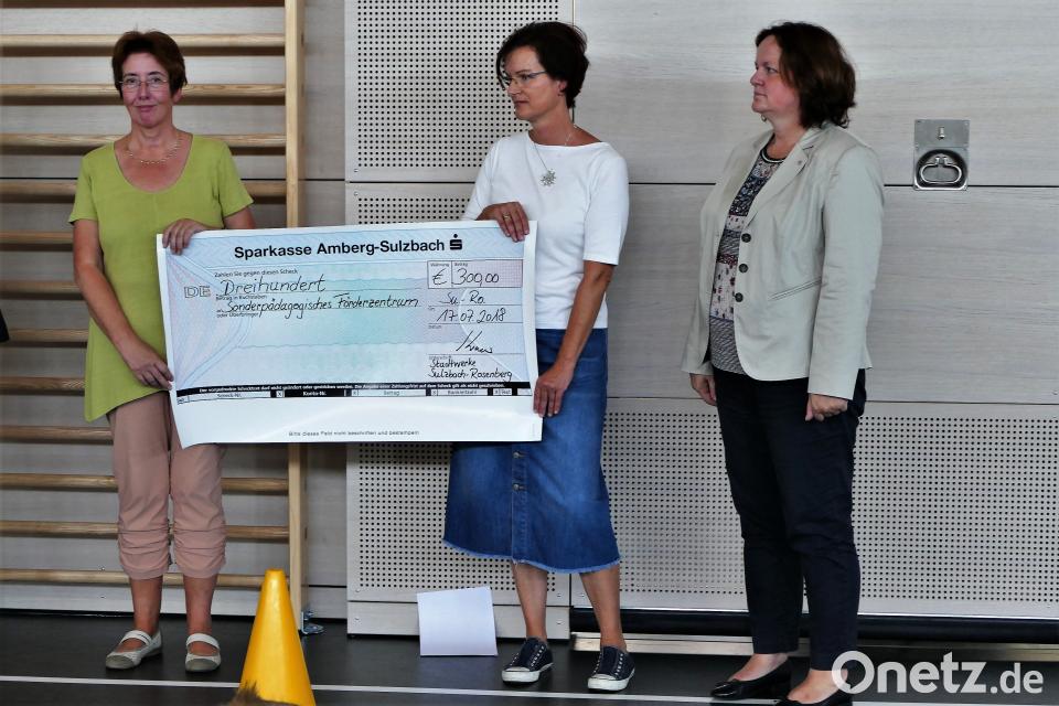 Zur Übergabe der Urkunden kam auch Bürgermeister Michael Göth in die Grundschulen, gratulierte den Kindern zu ihrem Erfolg und betonte, dass sie damit in erster Linie etwas für sich und die eigene Gesundheit getan hätten. Petra Leier und Roland Kraus von den Stadtwerken belohnten deren Eifer mit barer Münze, das heißt, dass für jeden zurückgelegten Kilometer zwei Cent gespendet wurden. Davon erhielt jede Klasse 20 Euro als Zuschuss in die Klassenkasse, die Hälfte der Summe wird an eine gemeinnützige Organisation gespendet. Heuer wurde dafür das Sonderpädagogische Förderzentrum ausgewählt und an dessen Leiterin, Sonderschulrektorin Gisela Lehnerer, 300 Euro übergeben. Das Geld wird dort für ein Schulfrühstück als gesunder Start in den Tag verwendet.