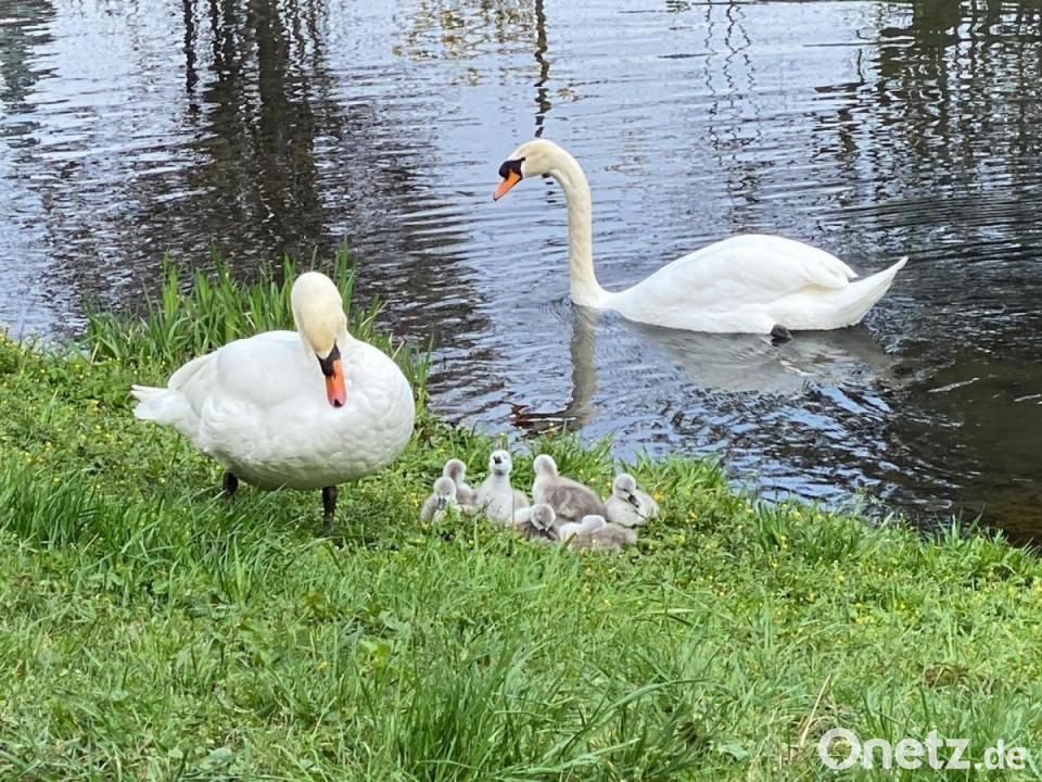 Siebenfacher Nachwuchs bei Familie Schwan im Sulzbach-Rosenberger Bürgerpark