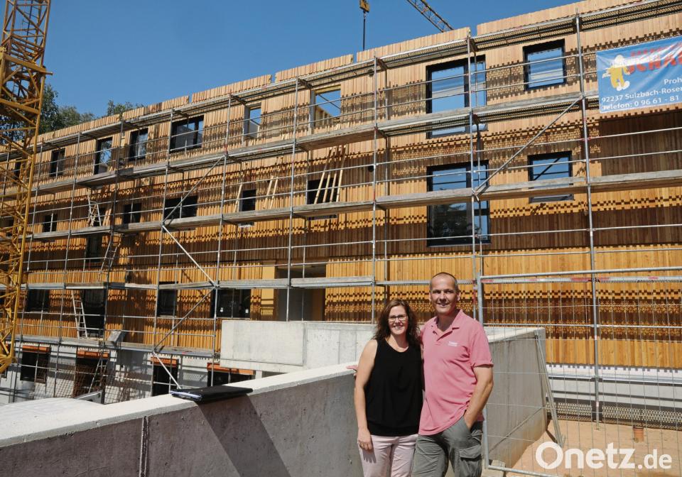 Schon 2016 nahmen die Stegers Kontakt mit der Regierung der Oberpfalz in Regensburg auf, die für die Förderung solcher Vorhaben zuständig ist. Dort zeigte man sich positiv überrascht, dass Privatleute und nicht, wie sonst üblich, Baugesellschaften Interesse am sozialen Wohnungsbau zeigen. Vor allem einkommensschwache Bürger sollen dadurch die Möglichkeit erhalten, an bezahlbaren Wohnraum zu kommen. Die Stegers holten sich also eine Förderzusage und planten mit dem Architekturbüro Eberhardt-Vogel-Hirsch (EVH) nach den Vorgaben der Regierung das Projekt auf ihrem erworbenen Grundstück an der Schwedenmühle, Sulzbacher Straße 2. Entstanden ist dort in den letzten zehn Wochen ein rechteckiges Gebäude mit 1074 Quadratmetern Wohnfläche. Es beherbergt 16 Wohnungen zwischen 55 und 105 Quadratmetern in Untergeschoss, Erdgeschoss, erstem und zweitem Stock. Bezugsfertig soll es am 1. Dezember sein, das Richtfest ist schon demnächst geplant.