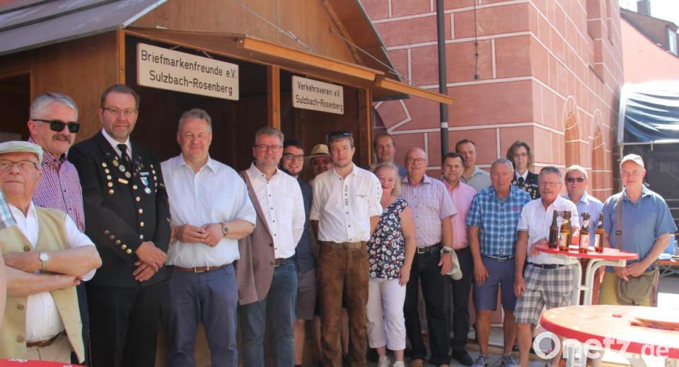Anlässlich des 43.Altstadtfestes und die Verbindung das die Post 275 Jahre in Sulzbach-Rosenberg vertreten ist, wurde an der Briefmarkenbude mit einen Frühschoppen gefeiert. Auch der Landrat, die Bürgermeister, die Stadträte, auch die Städtepartner aus Eschweiler und viele Interessierte aus der Bevölkerung feierten dieses Jubiläum mit. Die Briefmarkenfreunde haben dazu wieder einen schönen Beleg, passender Briefmarken und natürlich einen Sonderstempel gestaltet.