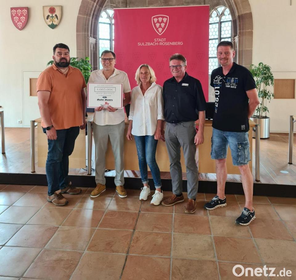 Genau 4663 Runden drehten die Teilnehmenden am Samstag, 29. Juni, auf der Strecke des Sulzbach-Rosenberger Stadtlaufs. Das Versprechen, jede Runde mit 1 Euro für den guten Zweck zu honorieren, lösten das Autohaus Auers und die Stadt Sulzbach-Rosenberg jetzt ein: Gemeinsam mit Vertretern des Autohauses überreichte Bürgermeister Stefan Frank im Rathaus einen Spendenscheck in Höhe von 4663 Euro an das Ernst-Naegelsbach-Haus in Sulzbach-Rosenberg. Die Einrichtung der Diakonie bietet Kindern und Jugendlichen aus belasteten Familien ein sicheres Zuhause, je nach Bedarf auf Zeit oder auch für länger. Der Leiter Stefan Reither dankte den Gebern und kündigte an, das Geld für die kommenden Sommerfreizeiten der Wohngruppen zu verwenden. Dank und Anerkennung galten aber auch allen Teilnehmenden des Sparkassen-Stadtlaufs, die durch ihren Einsatz diese Summe erlaufen haben.