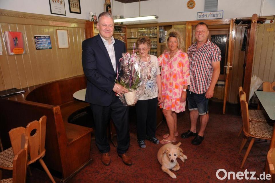 Einer, der auch mitunter hier anzutreffen ist, gratulierte namens des Landkreises: Landrat Richard Reisinger überreichte seiner Stammwirtin eine Orchidee samt Glückwünschen und kündigte schon mal seinen nächsten Besuch an.