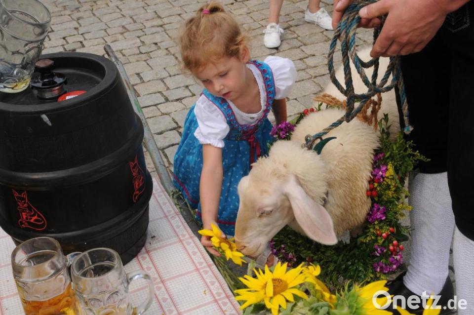 Drei dumpfe Paukenschläge, dann erklang der Kirwa-Marsch, und der Zug setzte sich in Bewegung: Titan und Freddie, zwei prächtige Percheron-Kaltblüter mit jeweils knapp einer Tonne Gewicht, zogen am Samstagnachmittag, 17. August, den riesigen Kirwabaum vom Bauhof durch die Innenstadt zum Luitpoldplatz. Thomas und Stefan Wölker vom Forstbetrieb Wölker aus Vilseck dirigierten ihre Schützlinge perfekt bis zum Kirwabaum-Loch. Eine bunte Schar von Musikanten des Heimat- und Trachtenvereins Stamm führte die farbenprächtige Parade der stolzen Kirwamoila und ihrer Boum an.