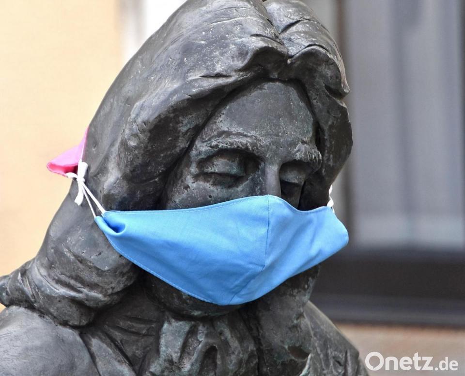 Er musste schon in einer Holzkiste sitzen, eine Strickmütze tragen und darf sich jetzt über eine Gesichtsmaske freuen. Achtsame Bürger zeigten hier wohl ein Herz für Knorr von Rosenroth in der Neustadt beim Delfinbrunnen. Und so geht die Sulzbacher Lichtgestalt auch in Zeiten der bei uns sinkenden Infektionszahlen mit gutem Beispiel voran, um Corona Paroli zu bieten. Als Barock-Zeitgenosse kannte er dieses hartnäckige Virus sicher nicht. Und von Hygiene war zur damaligen Zeit auch in gehobenen Kreisen wenig die Rede. Nur den Mindestabstand wird der Dichter sicher nicht selbst einhalten können, denn Rosenroth ist festgeschraubt.