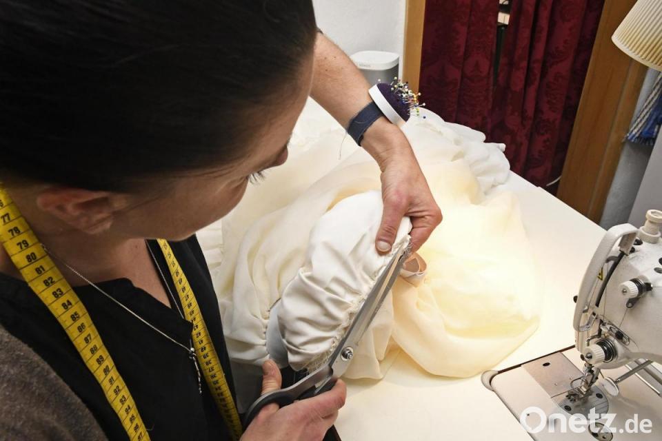 Manchmal kommt ihr beim ersten Blick auf das Kleid schon die Idee. Ein anderes Mal überlegt sie hin und her. Das Brautkleid aus den 1980ern, das sie der Schneiderpuppe einstweilen übergezogen hat, wird definitiv seine Ärmel einbüßen. "Die kommen sofort raus", sagt die Sulzbach-Rosenbergerin. Auch der Stehkragen mit der Spitze wird dran glauben müssen. Genauso die Rüschen am Saum. In der Mülltonne landen die Ärmel aber nicht. "Da lässt sich sicherlich was anderes draus machen", sagt Astrid Reyzl. Spontan fallen ihr Ärmelstulpen oder ein Haarschmuck ein. "Es kann wiederum schlicht sein oder total anders", sinniert die Fashion-Expertin über das zweite Leben jenes Brautkleids.