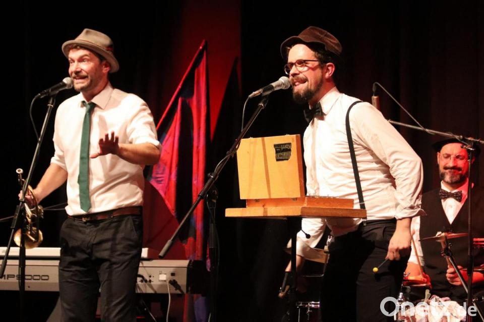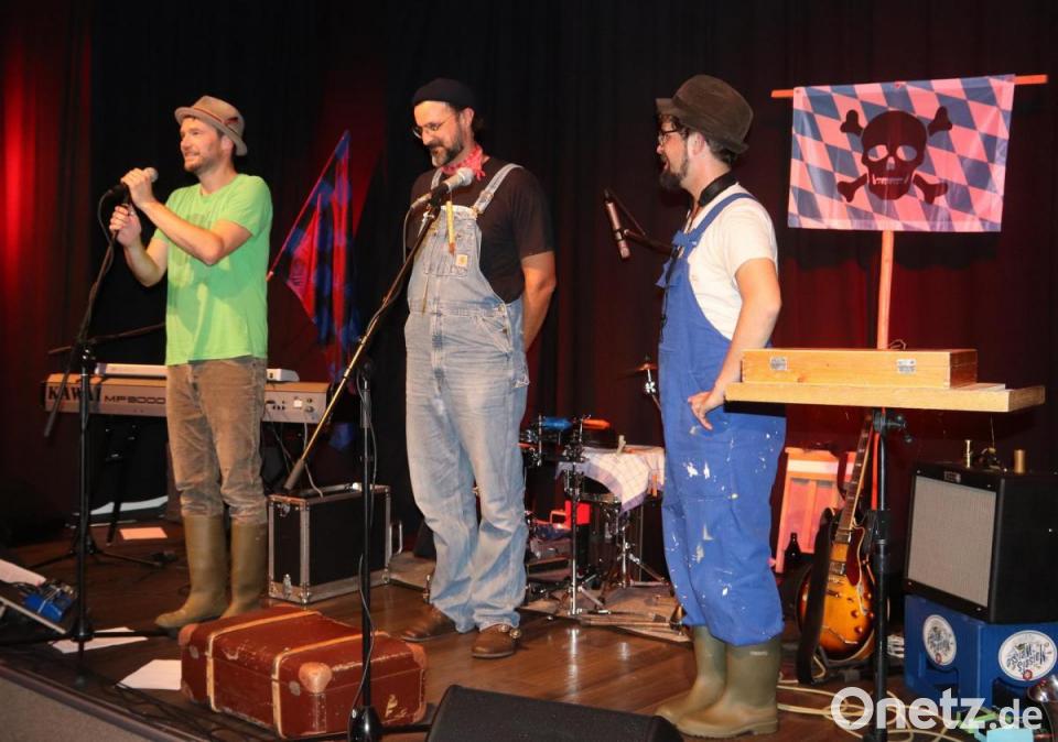 Am Samstag zogen Dominik Niklas ("Da Oine"), Uli Radl ("Da Aaner") und der sie auf Konzerten begleitende Bernd Pirner alias "Weberknecht" in einem ausverkauften Haus auf die Bühne. Ihr Markenzeichen: Gummistiefel. Die brauchen sie manchmal, wenn sie in ihren Liedern tief durch die Eigenheiten der Oberpfälzer Lebensart waten.