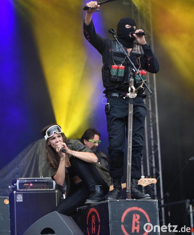 Ebenso beim politisch völlig inkorrekten Blödel-Hardcore von "Rammelhof". Die Phallussymbol-besessenen Wiener mischen harte Mithüpf-Klänge mit Sozialkritik und einer abstrusen Bühnenshow. Da küssen sich ein skifahrender Hitler und ein Selbstmord-Attentäter, und Anti-Demokrat "Wladimir" ("Put, put Putin") wird attackiert. Einfach skurril. Zuvor sorgen Liedermacher Hundling und die Raith-Schwestern mit starken Texten für einen atmosphärischen Auftakt des gelungenen Festivals.