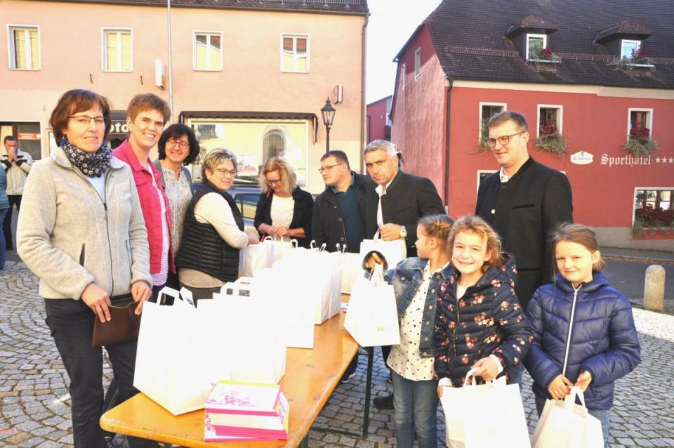 Die Tüten reihten sich auf den Tischen aneinander. Der Vorstand des Frauenbunds hatte reichlich Kuchen gebacken und verkaufte ihn nach dem Gottesdienst. Die Bäckerei Seegerer und Spickenreither sowie das Café Sonnenhof unterstützten die Frauen und beteiligten sich ebenfalls mit einer Tortenspende. Erst war der Verkauf auf dem Kirchenvorplatz. Der Rest ging dann im Rathaus über die Kuchentheke. Pfarrer Wilhelm Bauer erhält nun 530 Euro für die Sanierung der Wallfahrtskirche "St. Jodok".