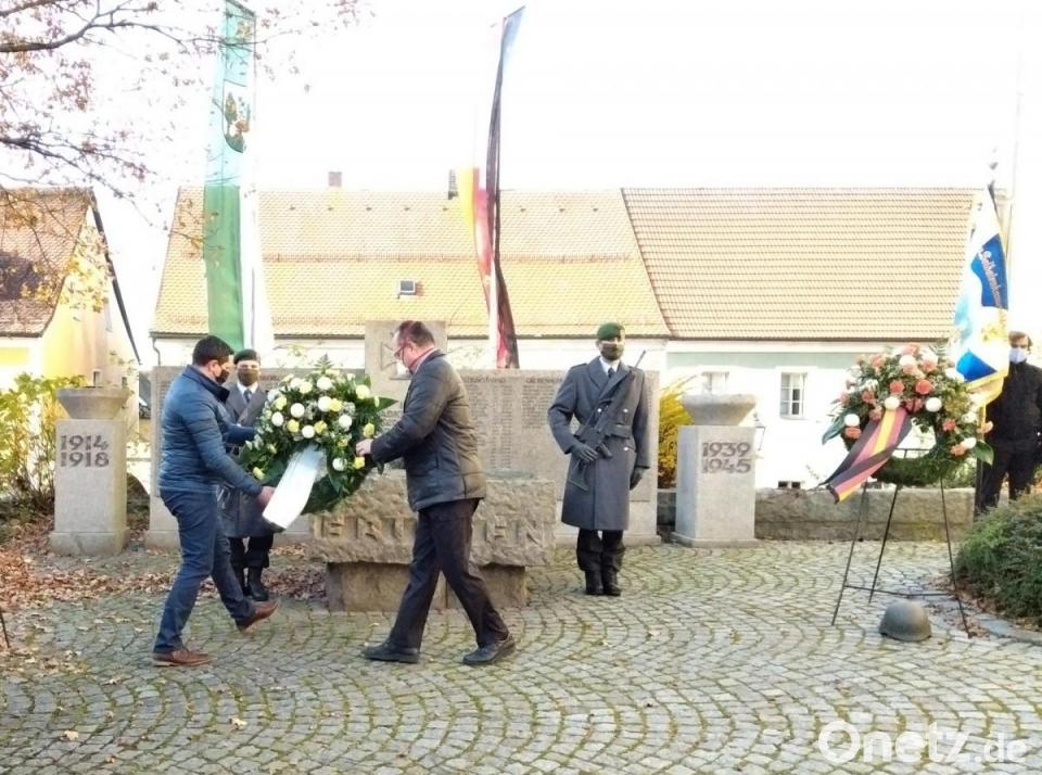 „Der heutige Tag des Gedenkens mahnt uns zum Nachsinnen darüber, was wir alle als Nation, Kommune und Einzelner für Frieden, Freiheit und Menschlichkeit tun können“, regte Bürgermeister Ludwig Gürtler in seiner Rede zum Nachdenken an. Rudi Schneider an der Orgel und Daniel Eger mit der Trompete manövrierten die Gottesdienstbesucher in eine andächtige Stille. Anschließend folgten eine Schweigeminute und die Kranzniederlegung auf Abstand am Kirchenvorplatz.