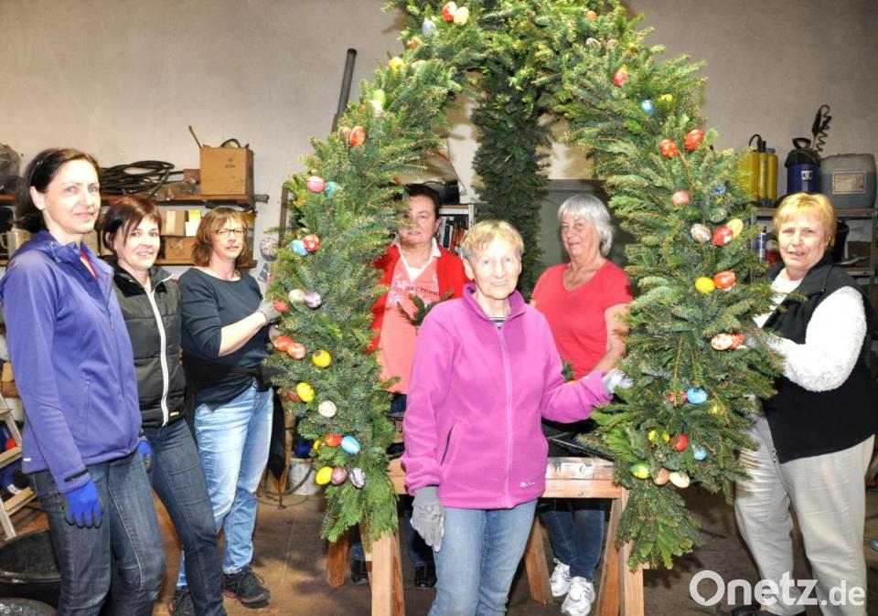 Sieben Frauen trafen sich am Donnerstag im Bauhof zum Binden und Schmücken einer Krone. Sie stammt noch vom bereits verstorbenen Vorsitzenden Hans Sier.