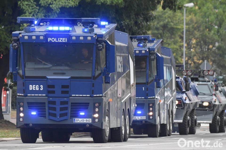 Die Polizei zeigte seit dem Mittag starke Präsenz, außer mit den Wasserwerfen auch mit berittenen Beamten und gepanzerten Fahrzeugen. Sie wurde von Kräften aus mehreren Bundesländern und von der Bundespolizei unterstützt.