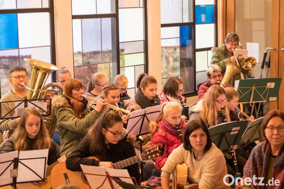 Auch der musikalische Nachwuchs hatte im Konzertprogramm Platz gefunden. Bianka und Alexandra Saller verbreiteten Ruhe mit Harfe und Querflöte. Die Schüler des Musikateliers Heigl trugen variantenreiche Beiträge an Gitarre, Piano und Akkordeon vor. Musikalisch riefen sie zur Offenheit für die Botschaft des Herrn auf. Als Solist brillierte Andreas Lehmann an der Gitarre mit wunderbarer Knabenstimme. Mit den klassischen Liedern der Vorweihnachtszeit wie „Leise rieselt der Schnee“ und „Morgen Kinder wird’s was geben“ sowie dem freudig schwungvollen Abschluss „Lasst uns froh und munter sein“ richtete die Bläserklasse der Blaskapelle Teunz den Blick bereits nach vorne auf Weihnachten.