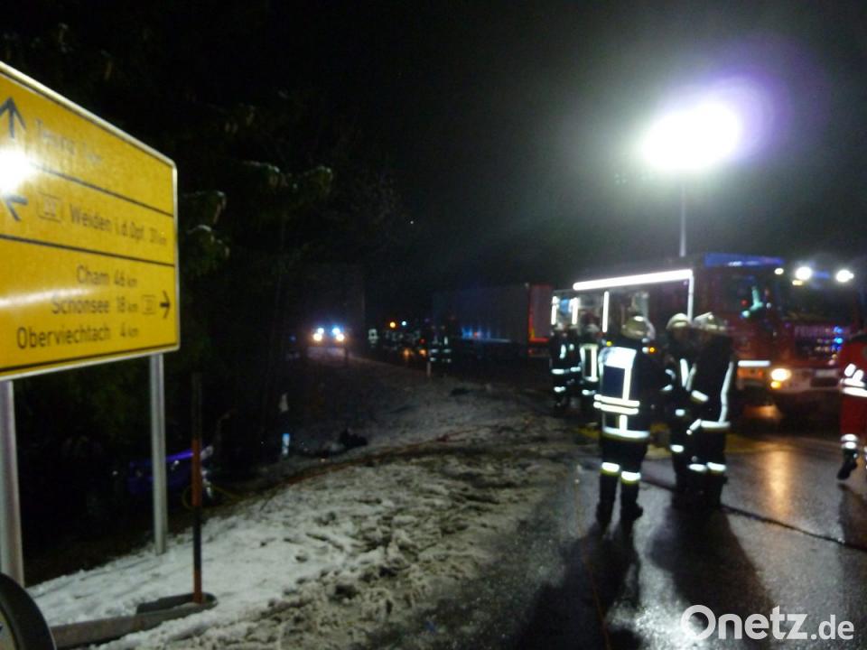 Die Feuerwehr Teunz musste unter der Einsatzleitung von Kommandant Andreas Brandstätter mit dem Spreizer beim Bergen der Verletzten helfen. Johanniter, BRK und Notarzt waren vor Ort. Ein angeforderter Hubschrauber machte sich von Nürnberg aus auf den Weg, musste allerdings wegen den ungünstigen Witterungsbedingungen den Flug abbrechen. Die beiden schwer verletzten Männer wurden mit dem Rettungswagen in die Kliniken nach Weiden und Amberg gebracht. Auf Anordnung der Staatsanwaltschaft wurde der Mazda durch die Polizei sichergestellt. Der 59-jährige Lkw-Fahrer blieb unverletzt. Allerdings hatte er verderbliche Lebensmittel geladen, welche er bei mehreren Discounter-Filialen in ganz Südbayern abliefern sollte. Zum Übernehmen der Fracht im Auflieger musste der Sattelschlepper von einem Spezial-Abschleppwagen zum Volksfestplatz Oberviechtach gebracht werden. Bis dieser anrückte, verstrich etliche Zeit. Auch Kreisbrandinspektor Richard Fleck und die Wehren aus Oberviechtach und Zeinried waren vor Ort und mit dem Ausleuchten und Säubern der Unglücksstelle beschäftigt.