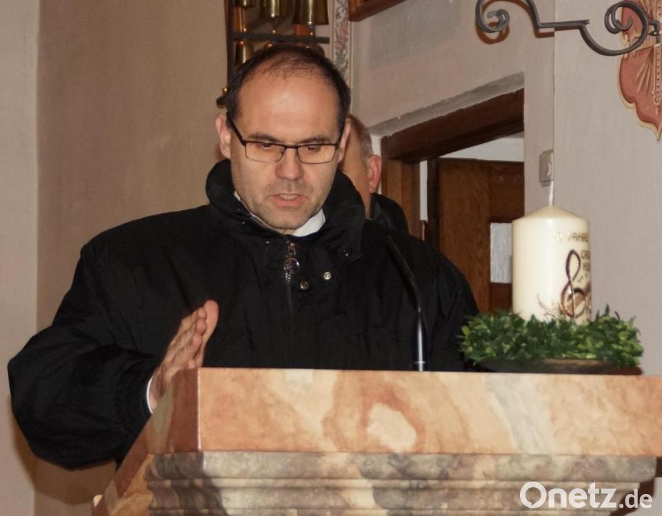 Abschließend bedankte sich Martin Pflug bei Pfarrer Heinrich, der vor 20 Jahren den Anlass zur Gründung des Chors gegeben hatte. Er überreichte eine Kerze, die Chormitglieder in Handarbeit verziert hatten. Auf ihr stand in kunstvollen Lettern das Motto der Gruppe: „Die Musik drückt das aus, was nicht gesagt werden kann und worüber zu schweigen unmöglich ist“ (Victor Hugo).