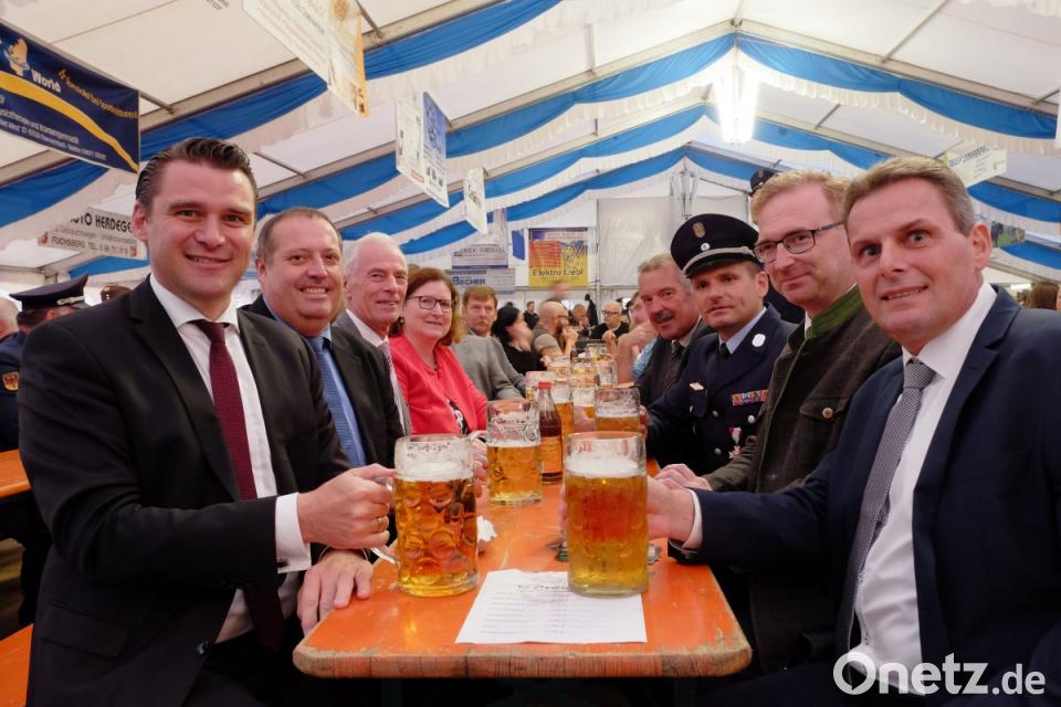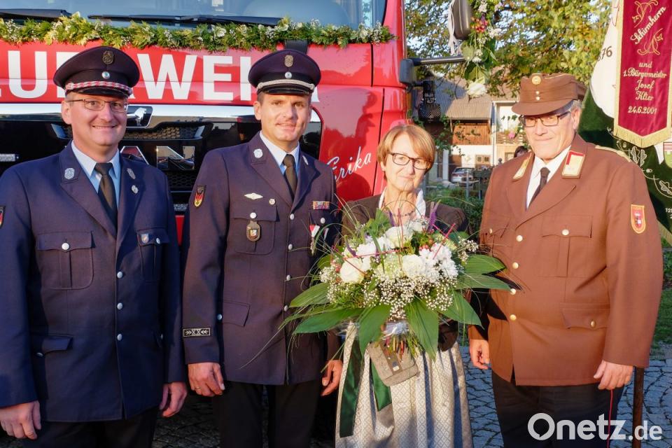Leo Winter griff den Gedanken nochmals auf und betonte, dass die Feuerwehrleute, die sich einsetzen und ausbilden lassen, nicht um Werkzeug bitten müssen sondern "das beste verfügbare Werkzeug verdient haben". Im Namen der Kameraden aus Zell am See überreichte Kommandant Peter Onz einen handgeschnitzten Florian. Kommanddant Andreas Brandstätter berichtete von einem Brauch in Österreich, wo jedes große Feuerwehrfahrzeug einen Paten bekommt. Als Ausdruck der freundschaftlichen Verbundenheit wurde diese Ehre Erika Winter übertragen, so dass in Zukunft der Name "Erika" auf dem Hilfeleistungslöschgruppenfahrzeug Florian Teunz 40/1 prangt. Mit dem neuen Fahrzeug voran, marschierten alle Gäste mit Blasmusik und Fahnen zügig zum Festzelt. Dort fanden sich dann auch die örtlichen Firmen mit ihren Belegschaften zahlreich zum Tag der Vereine und Betriebe ein, so dass das große Zelt voll besetzt war. Vorsitzender Adolf Hammer dankte für den hervorragenden Besuch. Während sich die Gäste mit Schmankerln aus der bestens organisierten Festküche des Veranstalters versorgten, begann die Original Waidhauser Blasmusik zunächst bayerisch-böhmisch.