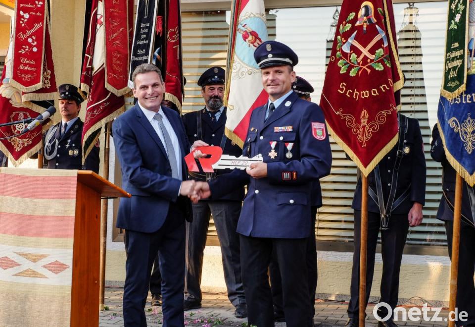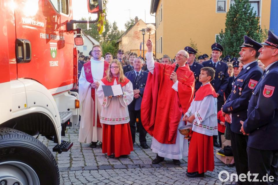 Im Anschluss segnete Pfarrer Herbert Rösl das neue Fahrzeug und bat um Gottes Schutz für die Einsatzkräfte. Bürgermeister Norbert Eckl begrüßte die zahlreichen Ehrengäste, darunter MdL Alexander Flierl, Landrat Thomas Ebeling, zahlreiche Bürgermeisterkollegen, Gemeinderäte und die Landkreisführung der Feuerwehren. Ein besonderer Gruß galt den österreichischen Freunden aus Zell am See, allen voran Landesfeuerwehr-Kommandant Leo Winter und den Kommandanten der Feuerwehr Zell am See, Peter Onz. Landrat Thomas Ebeling zeigte sich überzeugt, dass das wunderschöne Fahrzeug bei der Feuerwehr Teunz in guten Händen ist und professionell bedient wird. Kreisbrandmeister Robert Heinfling lenkte die Aufmerksamkeit auf die Mannschaft hinter dem Fahrzeug: "Kein Feuerwehrauto kann zu einem Einsatz fahren, ohne die Mannschaft die es professionell bedient. Und alle diese Frauen und Männer arbeiten ehrenamtlich in ihrer Freizeit!"