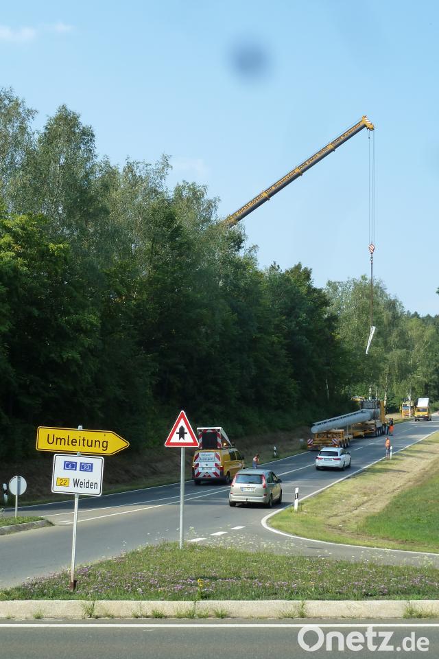 (ptr) Große Schwertransporter der Firma Max Bögl und ein Kran im Getreidefeld sorgten am Montag für Aufsehen an der Teunzer Kreuzung. Es handelte sich aber nicht - wie einige anfangs dachten - um die ersten Maßnahmen für den eventuell heuer noch beginnenden Umbau der Kreuzung an der Bundesstraße 22/Staatsstraße 2159/Kreisstraße SAD 42. Vielmehr stellte die Tochterfirma der Telekom - die Deutsche Funkturm GmbH (DFMG), Regionalvertretung Nürnberg - einen 25 Meter hohen Schleuderbetonmasten mit einer Plattform und einem Betriebscontainer auf. Laut Auskunft von Bürgermeister Norbert Eckl ist dies ein Ersatz für einen Masten, von welchem die Telekom in Oberviechtach weichen musste. Das Unternehmen nahm Kontakt mit der Gemeinde Teunz auf, um einen geeigneten Standort zu suchen. Dieser wurde auch gefunden - allerdings liegt das Privatgrundstück am Teunzer Berg (links in Fahrtrichtung Nabburg) bereits in der Gemarkung Rottendorf der Gemeinde Niedermurach. Der dortige Gemeinderat hatte dann auch in seiner Sitzung am 10. Oktober 2017 dem Bauantrag das gemeindliche Einvernehmen erteilt. Die Genehmigung des Landratsamtes Schwandorf erfolgte am 13. Dezember 2017. Dort ging die Baubeginnanzeige am 27. Juni 2018 ein.
